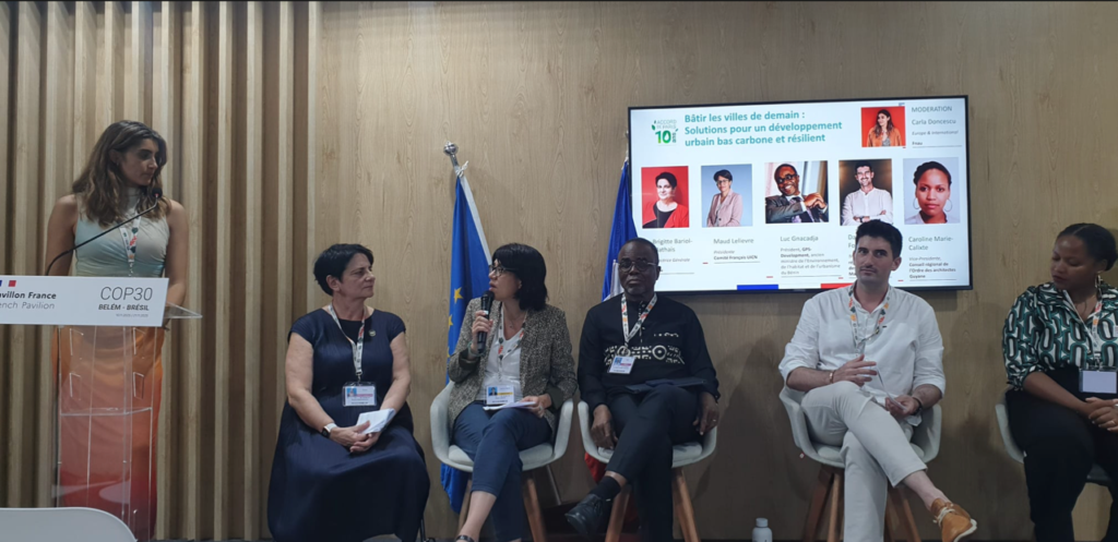C’est dans cet esprit que j’ai eu l’opportunité d’intervenir au Pavillon France lors de la session « Bâtir les villes de demain : solutions pour un développement urbain bas carbone et résilient ». Les échanges ont réaffirmé que les Solutions fondées sur la Nature constituent un pilier de l’action climatique : gérer durablement et restaurer les écosystèmes permet de répondre à des défis de société. J’ai notamment rappelé, à travers des exemples en France et à l’international, combien la restauration de dunes, de forêts littorales ou d’écosystèmes côtiers peut amortir les effets des événements extrêmes et protéger des populations entières, notamment dans un monde où une part importante de la population vit à proximité des côtes.